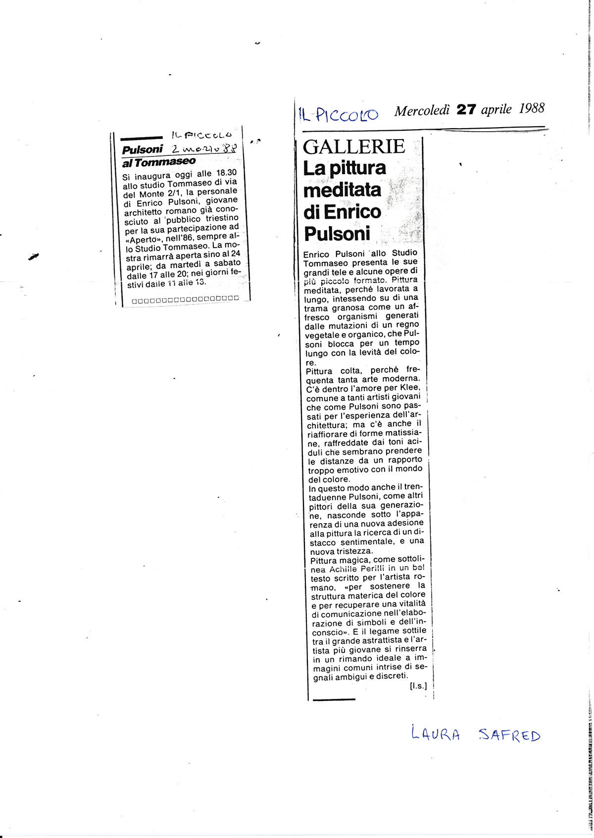 1988 Trieste Galleria Tommaseo Il Piccolo